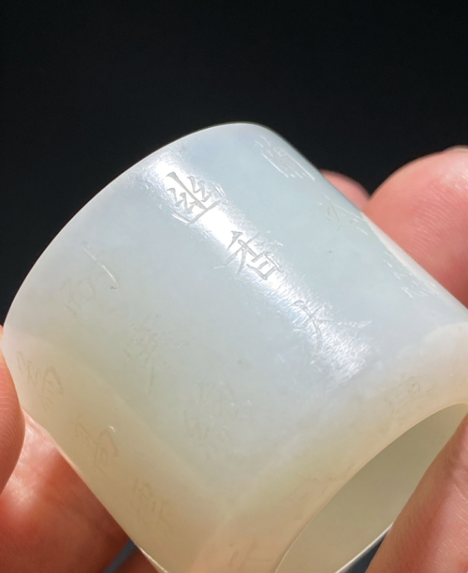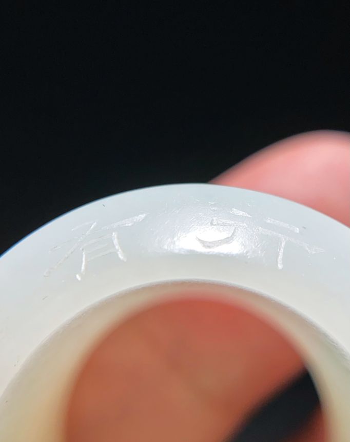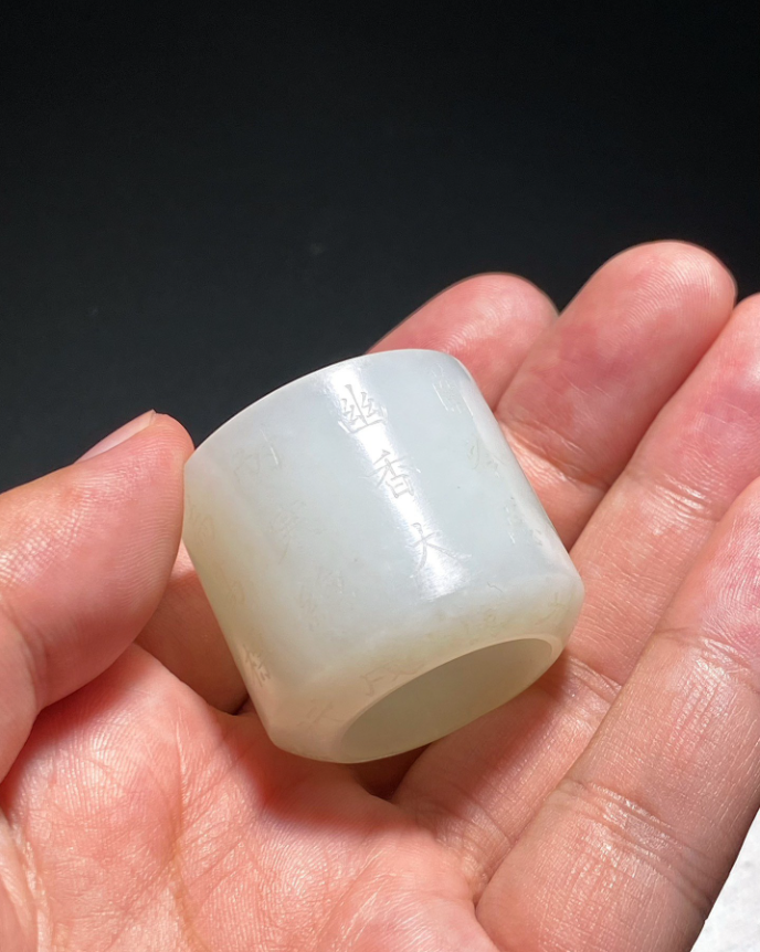 简介:直径3.4高3厘米内径22.6mm此件扳指为和阗白玉籽料质地,玉质细腻,油性极佳。一端微凸,一端内凹,扳指壁身较厚,打磨圆润,抛光细腻。外壁阴刻诗文:“亭亭玉立岁时兰,冷蕊幽香大耐寒,总为高标压群卉,故教开向雪中看”,凸起一端阴刻“道光庚戌行有恒堂制”款。排置规整谨严,颇具古韵。