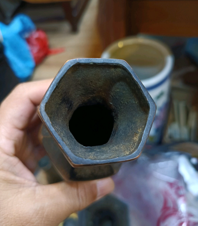 简介:清代六方铜瓶,保真包老,尺寸164x62mm,重量422.75克,瓶身有个小凹见图片,实物拍摄和图片一致,特殊物品,想要的朋友联系我!